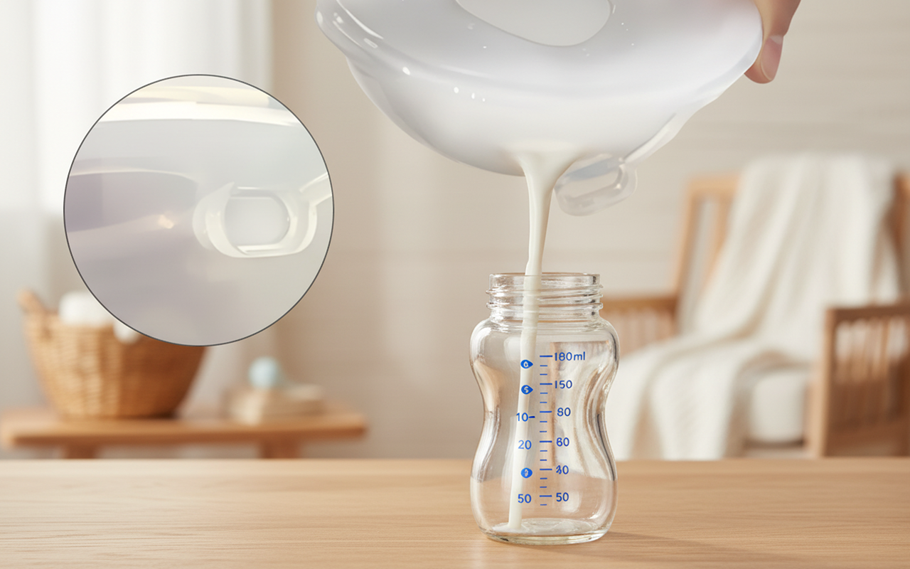 Pro zahájení sběru stačí vložit do podprsenky. Nalévání mléka do lahví je rychlé a bez nepořádku.