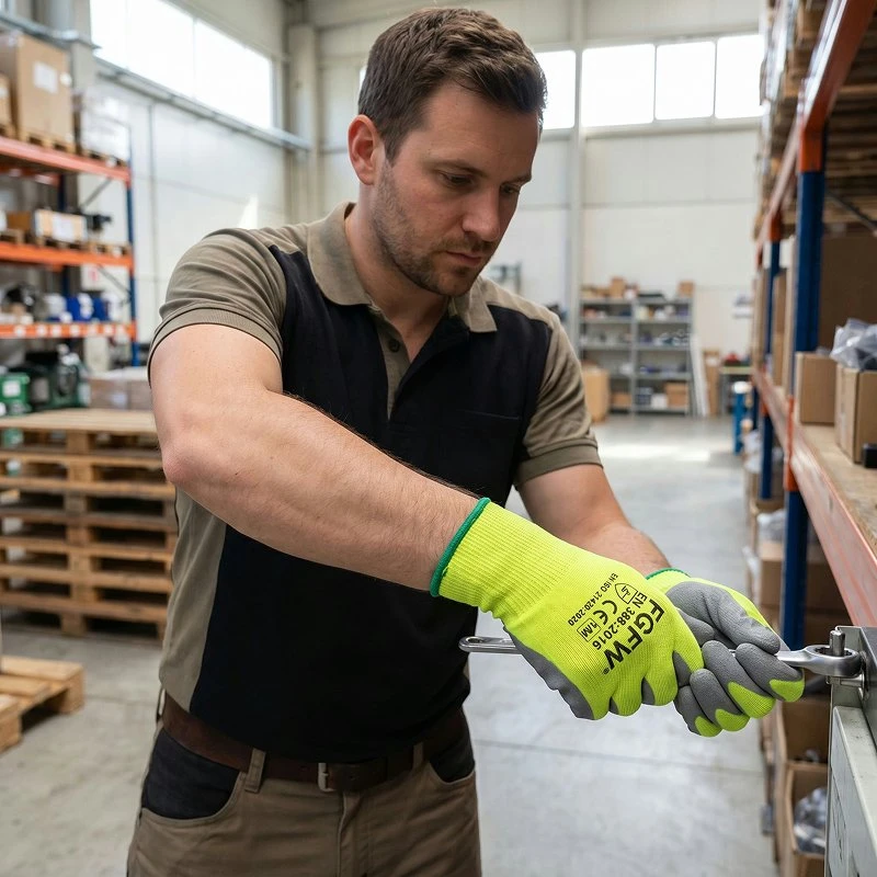 Používám je každý den v práci ve skladu. Dlaně pevně chytají krabice, rukavice dobře sedí a jasná barva pomáhá kolegům vidět ruční signály.