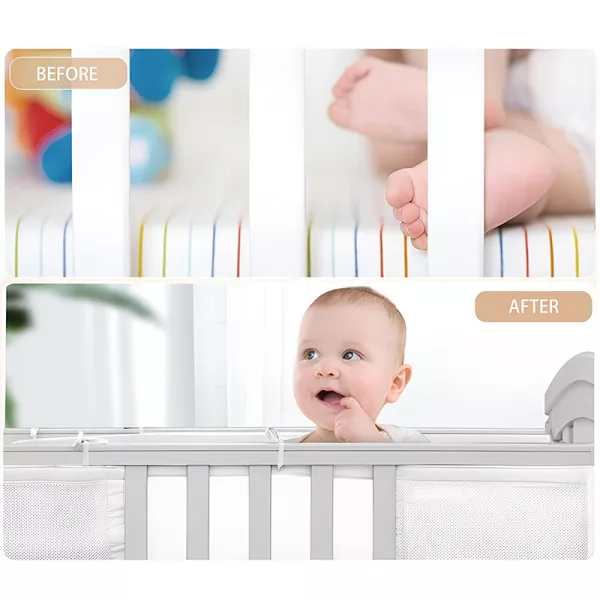 Náš ochranný potah do postýlky je vhodný pro širokou škálu velikostí postýlek. Lze jej upravit podle potřeby, což zajišťuje perfektní přizpůsobení pro postýlku vašeho dítěte.