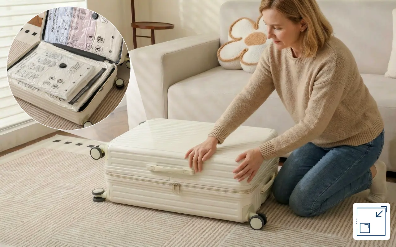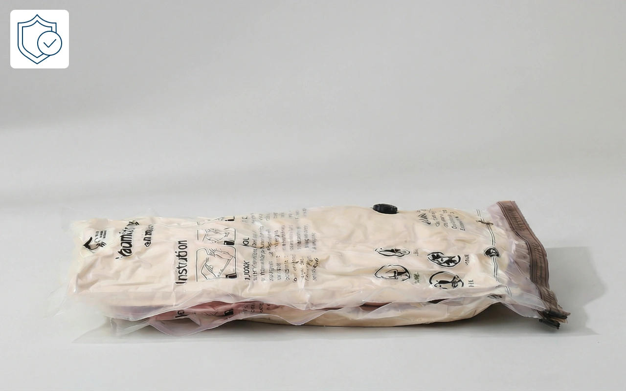 Balení objemných svetrů na cesty je vždy náročné. Vaky Ortorex snadno stlačí měkké věci do každého kufru. Každý vak je jednoduchý na použití doma i na cestách. Užijte si rychlé, přehledné ukládání, které vám pomůže udržet pořádek.