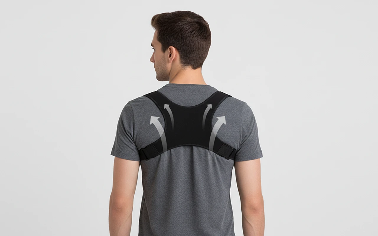 Nosím ho při hraní her a práci z domu. Už se nehrbím dopředu a měkké popruhy vůbec nedráždí kůži.