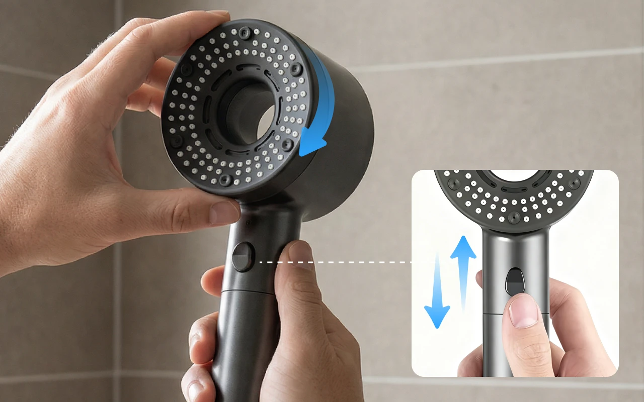 Přepínejte režimy nebo zastavte proud pouhým jedním pohybem. Každý si najde své dokonalé nastavení během vteřiny se sprchovou hlavicí Ortorex.