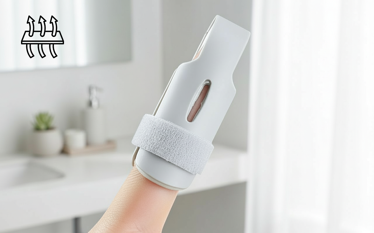 Speciální otvory umožňují snadné proudění vzduchu, takže pokožka zůstává chladná a svěží. Noste dlahu na prst Ortorex déle bez pocení nebo svědění.