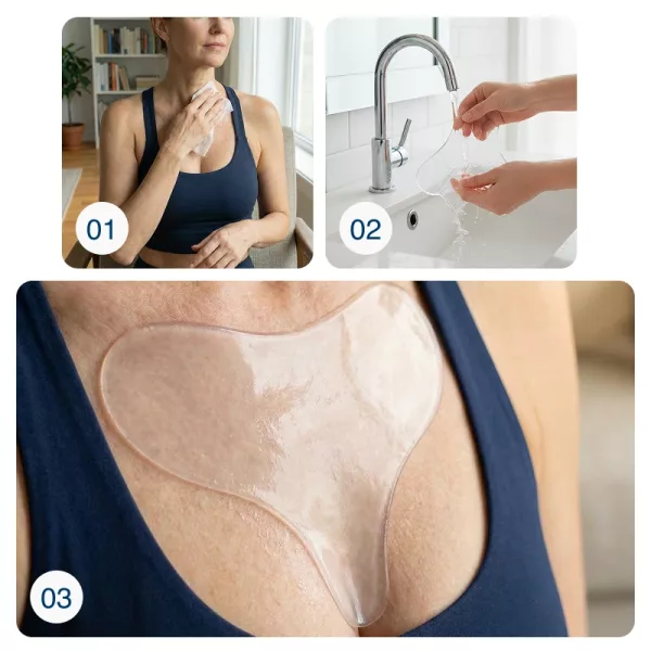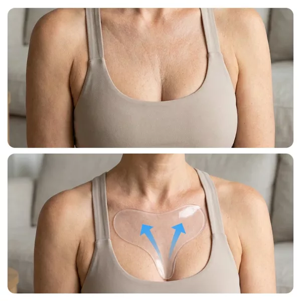 Vyrobeno z vysoce kvalitního silikonu, tento náplast na dekolt je měkký a šetrný k citlivým oblastem. Nezpůsobuje zarudnutí ani podráždění ani po dlouhodobém používání.