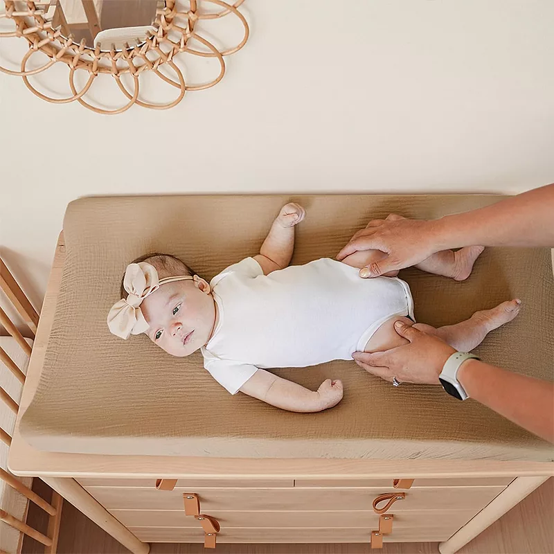 Milujeme, jak toto prostěradlo dělá přebalování pohodlnějším pro mou dcerku. Vždy na něm vypadá spokojeně. Zůstává hladké a svěží i po každém praní.
