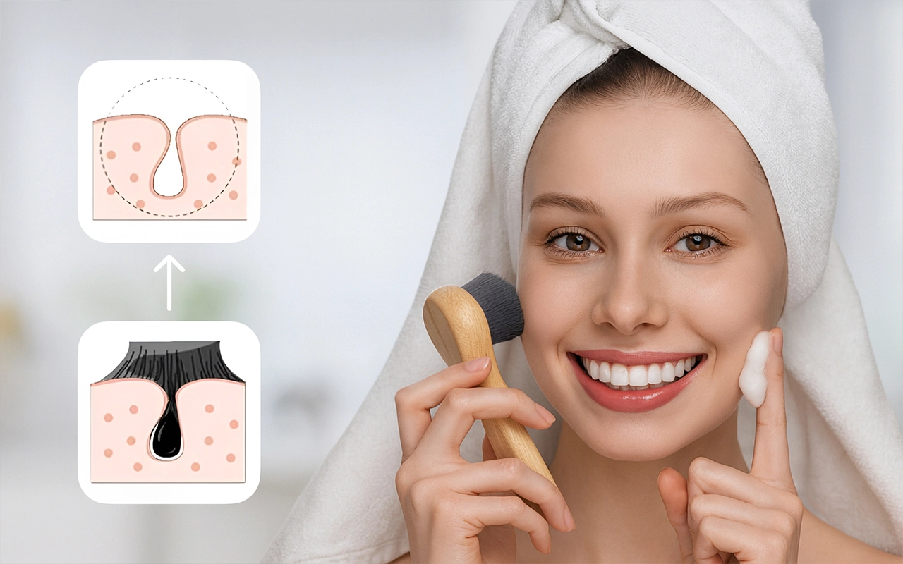 Jemné štětinky odstraňují odumřelou kůži bez podráždění. Vaše pleť zůstává čistá, zářivá a hladká po každém použití.