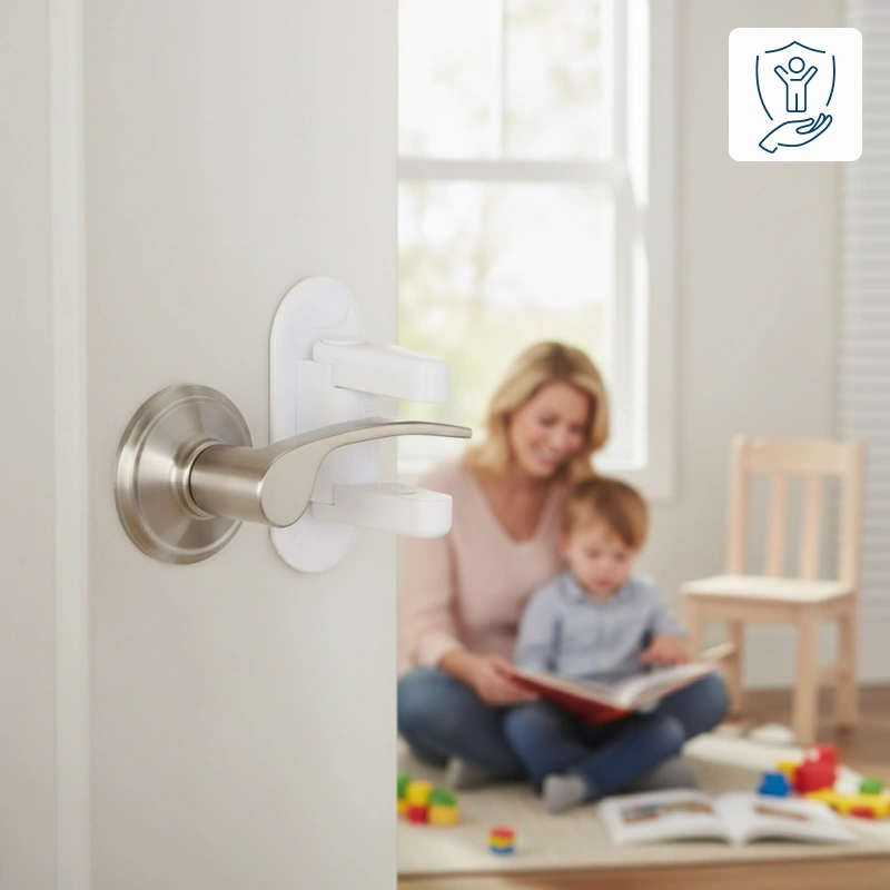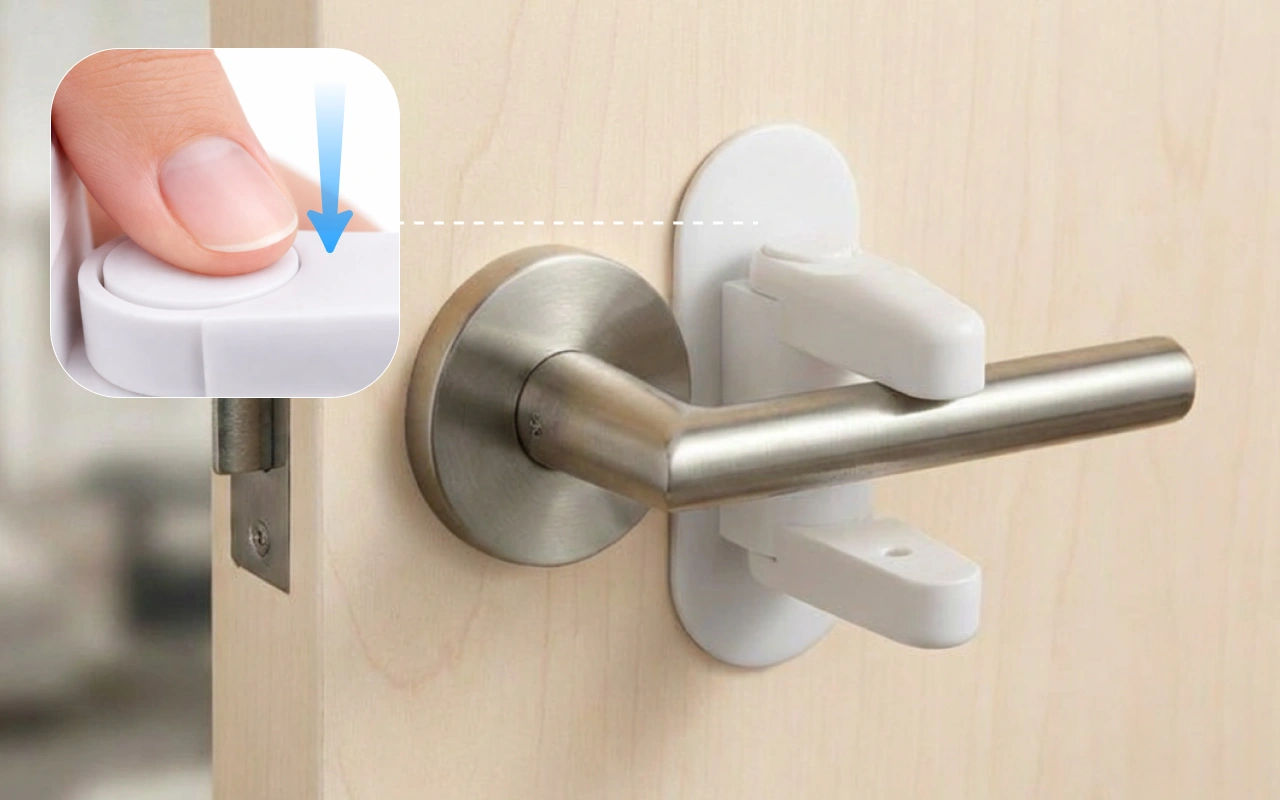 Odemkněte dveře jedním jednoduchým pohybem kdykoliv potřebujete. Praktický design zajistí, že se dospělí nezdrží složitými pomůckami.