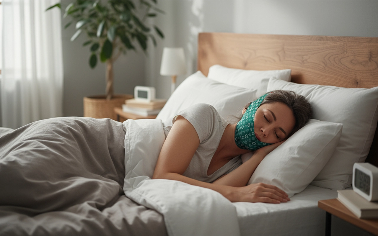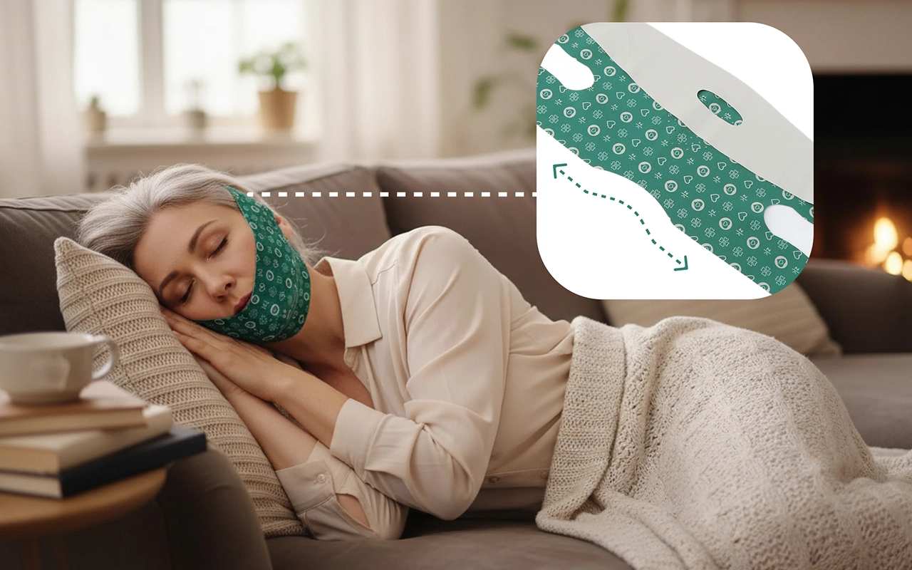 Snižte hluk, aby si každý mohl užít klidný spánek společně. Ortorex pásek na bradu udrží vaše ústa zavřená a zmírní hlučné dýchání.