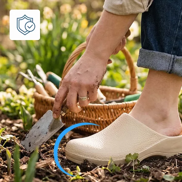 Choďte bezpečně po jakémkoli povrchu, i po dešti nebo polití. Speciální vzorek podrážky zabraňuje nechtěnému klouzání v kuchyni nebo na trávě.