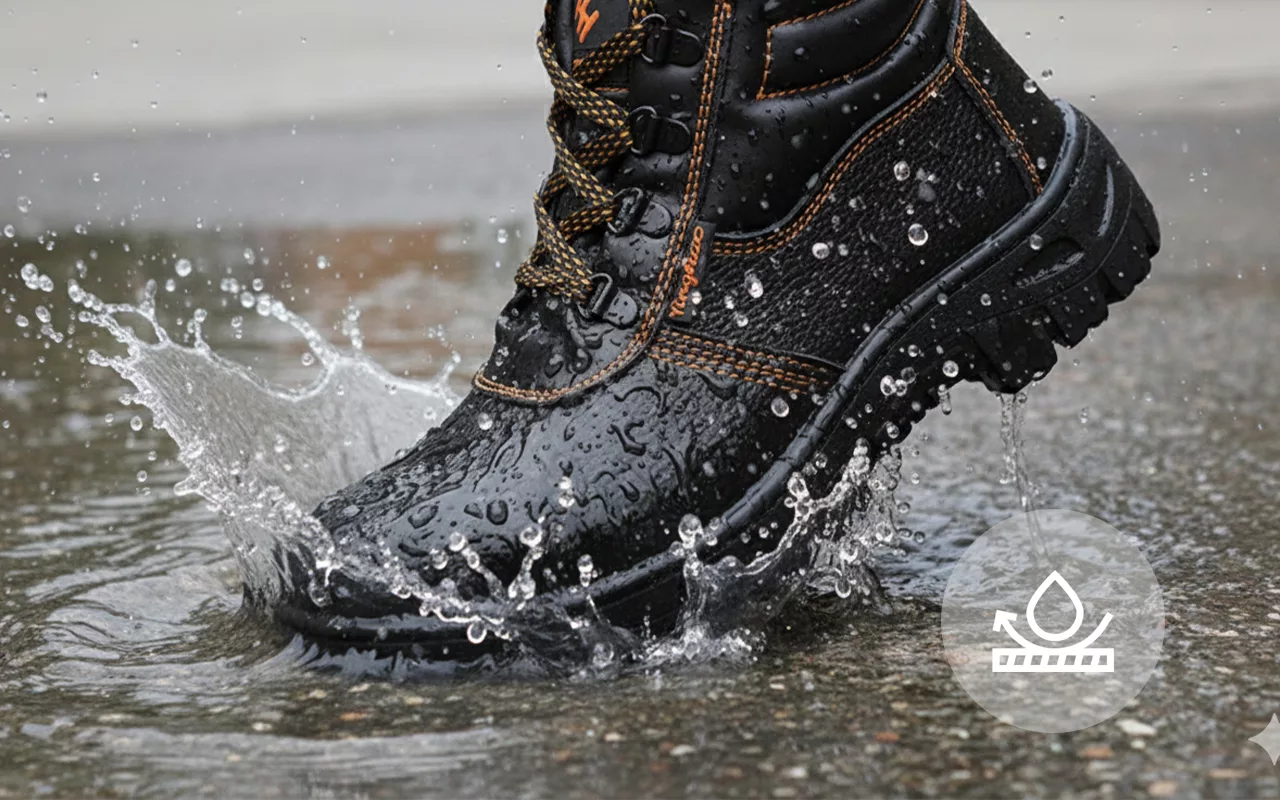 Protiskluzové podrážky snižují riziko uklouznutí na mokré podlaze. Pohybujte se sebevědomě i po oleji, blátě nebo mokré zemi.