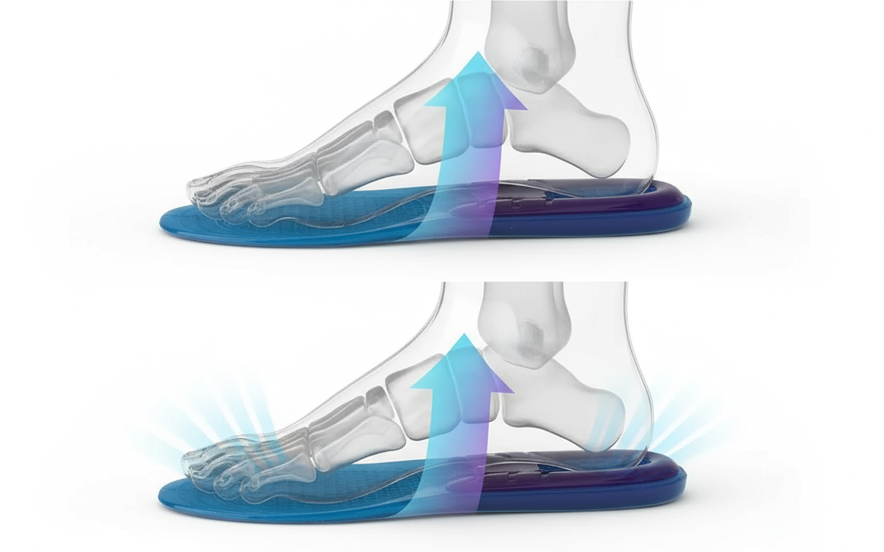 Silné polštářky ze silikagelu tlumí každý dopad při pohybu. Klouby a paty zůstávají chráněné, což snižuje každodenní zátěž.