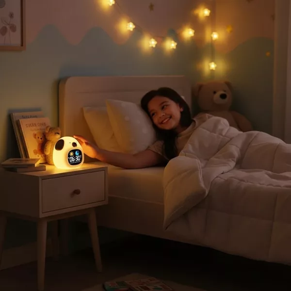 Vstávám brzy do práce, takže jsem potřeboval, aby můj syn lépe spal. Jemný budík ho probouzí bez leknutí a světlo mu dává najevo, že už jsem pryč.
