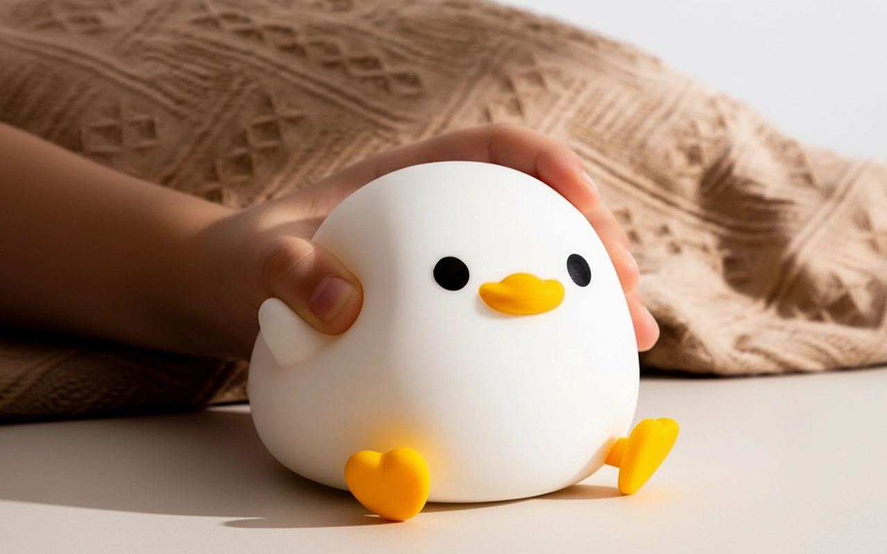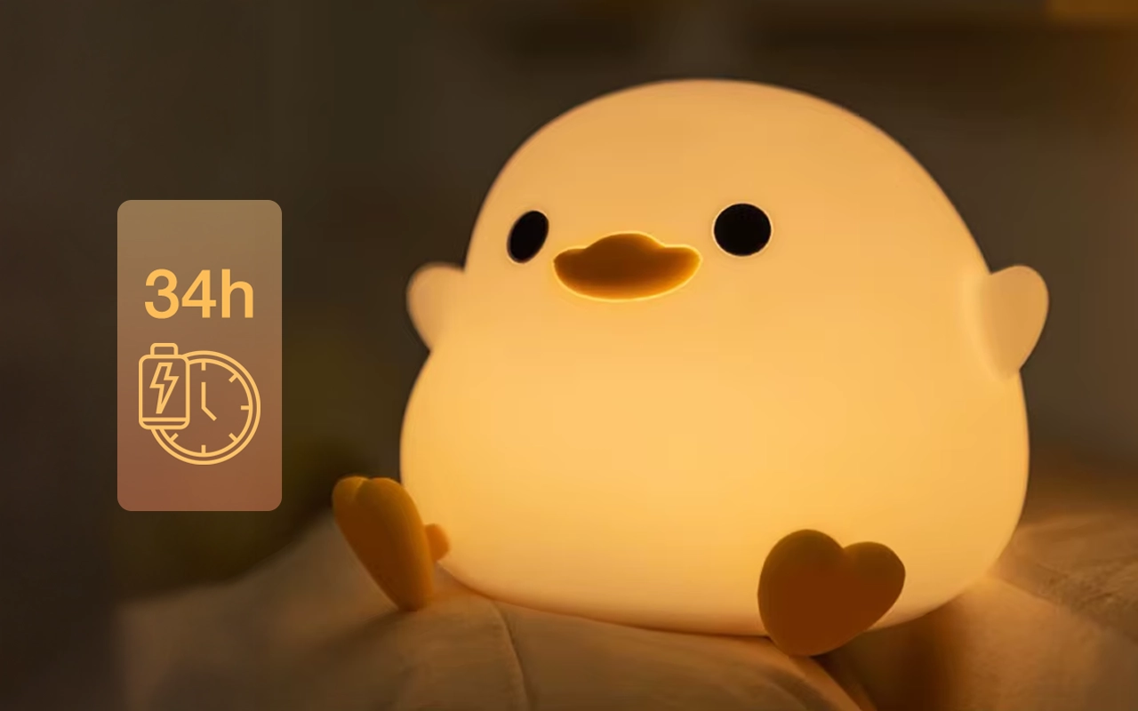 Líbí se mi, že je kachní lampička vyrobena z potravinářského silikonu. Když ji moje batole okusuje, nepanikařím, a světlo pořád vypadá měkce a útulně.