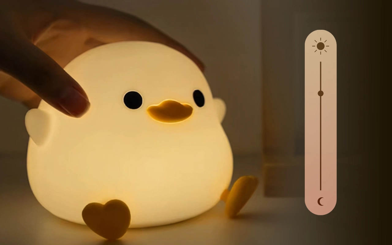 Překvapilo mě, jak moc se mi tahle kachní noční lampička líbí i pro mě samotnou. Je šetrná k očím, když se v noci probudím, a ťukáním si přirozeně upravím jas.