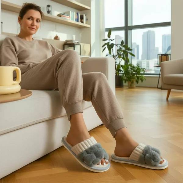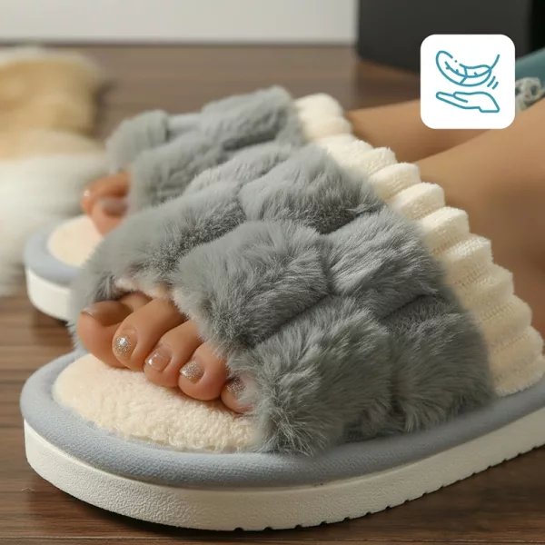 Roztomilé pantofle s otevřenou špičkou a teplou plyšovou podšívkou pro ženy