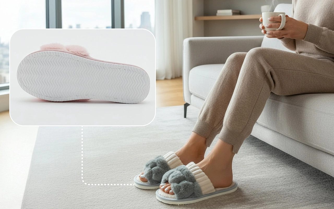 Buďte stabilní na jakékoli podlaze díky protiskluzové EVA podrážce. Chodíte po domě s jistotou, bez obav z uklouznutí či zakopnutí.