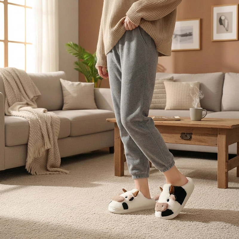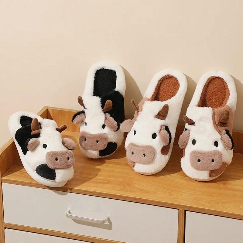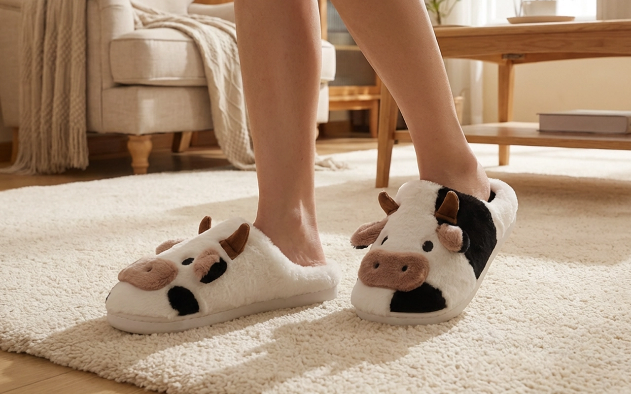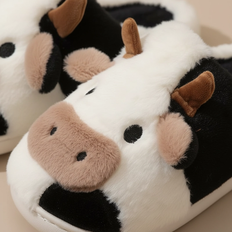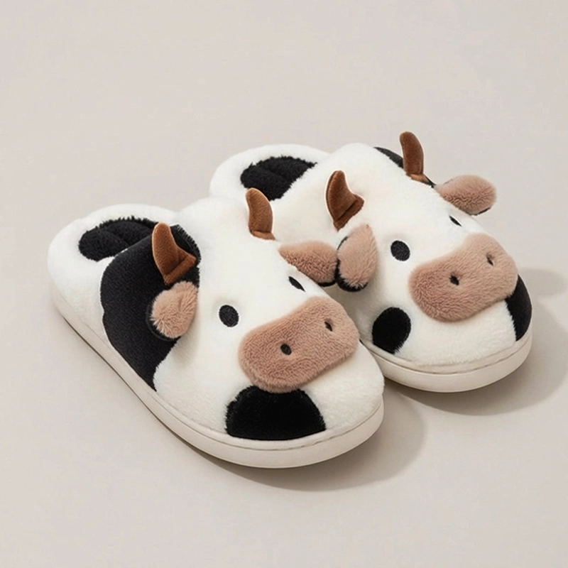 Pohodlné „kraví“ pantofle jsou skvělé na domácí lenošení. S manželkou máme stejné a je to zábava! Protiskluz dobře drží na našich dřevěných podlahách.