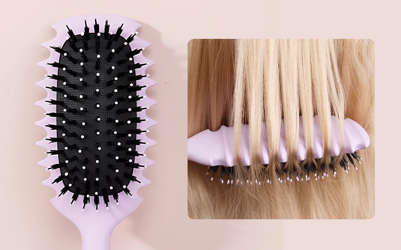 Žádné tahání a bolestivé škubání při každém pohybu. Ohebné nylonové štětiny jemně proklouznou a rozčesání je rychlé a snadné.