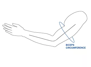 - 1. Obtočte měřicí pásku kolem bicepsu v jeho nejširším bodě.