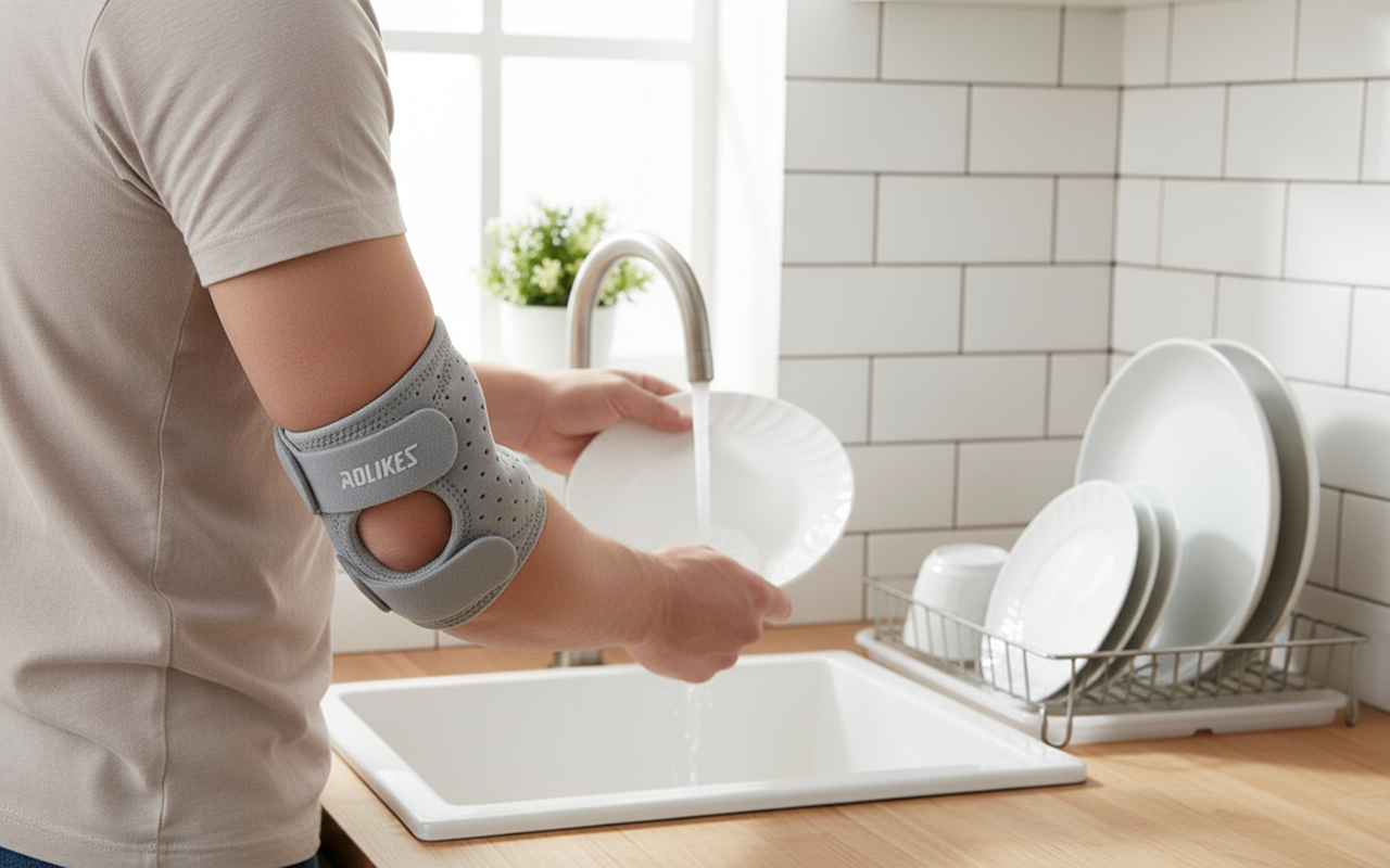 Udržujte stabilní lokty při tenise, golfu nebo badmintonu. Nastavitelný střih drží vše bezpečně při různých pohybech.
