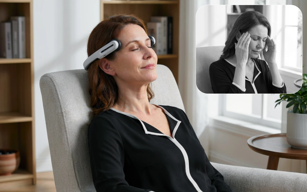 Pocítíte, jak tlak ze všech stran vaší hlavy rychle poleví. Zažijte pohodlí a relaxaci, když nepohodlí mizí.