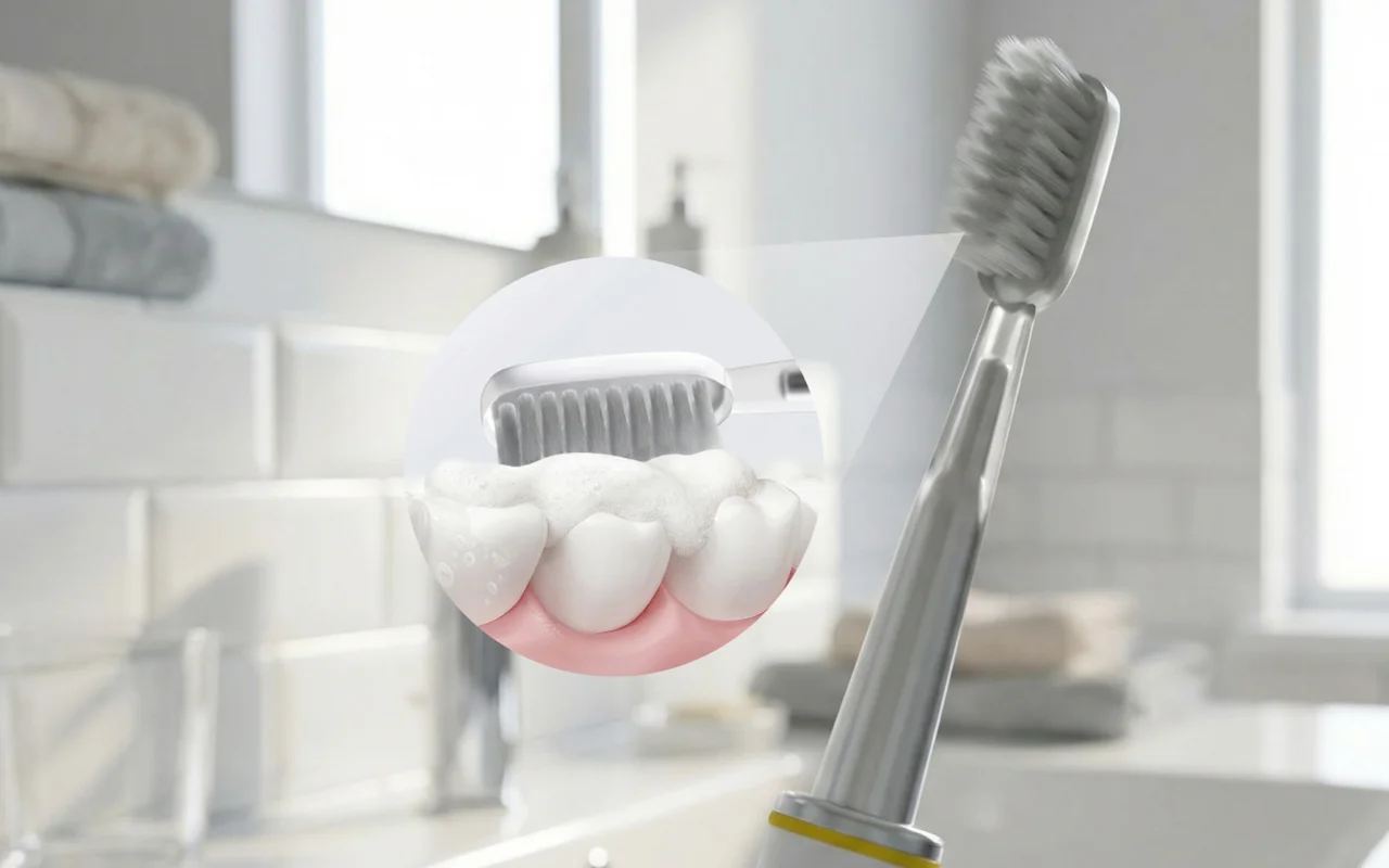 Vysokofrekvenční vibrace rychle a účinně odstraní skryté nečistoty. Zuby vypadají zářivější a čištění trvá každý den méně času.