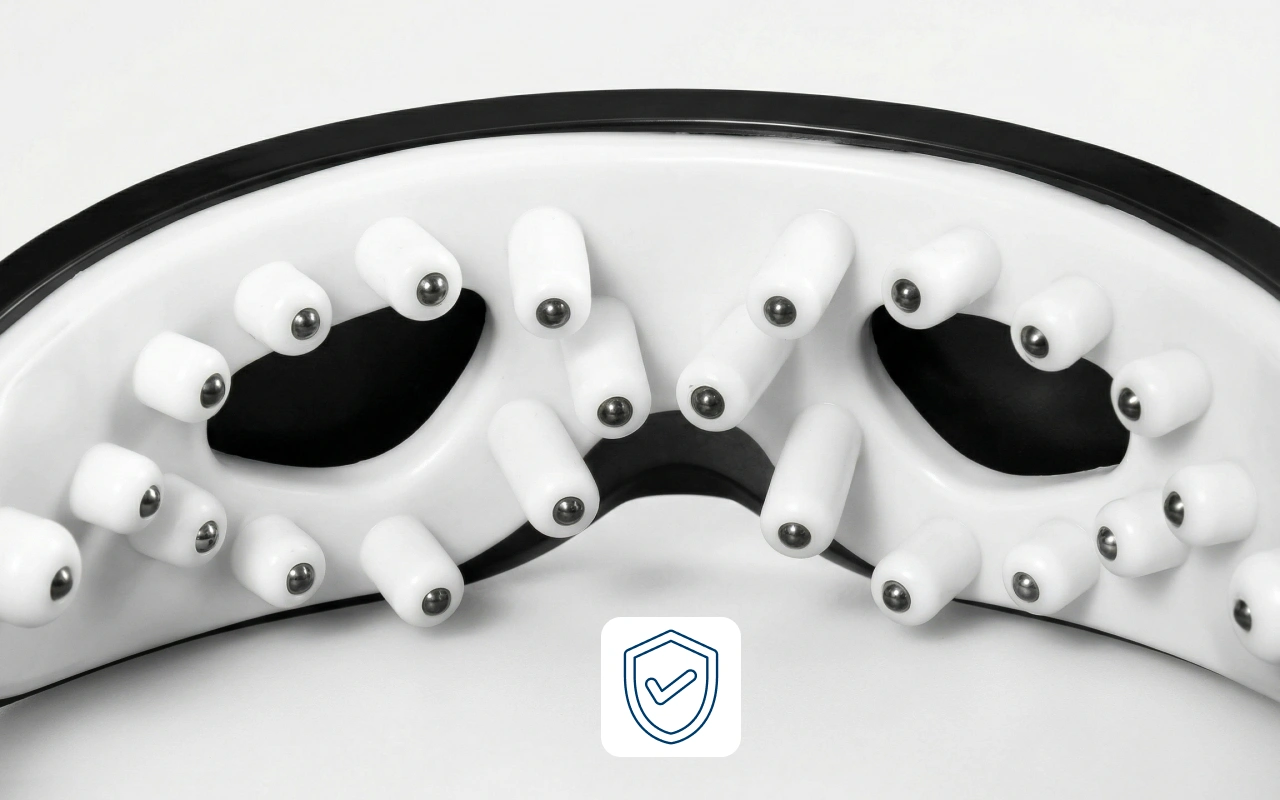 Silné vibrace uvolňují napětí kolem očí. Snadno se osvěžte po čtení, času u obrazovky nebo studiu.