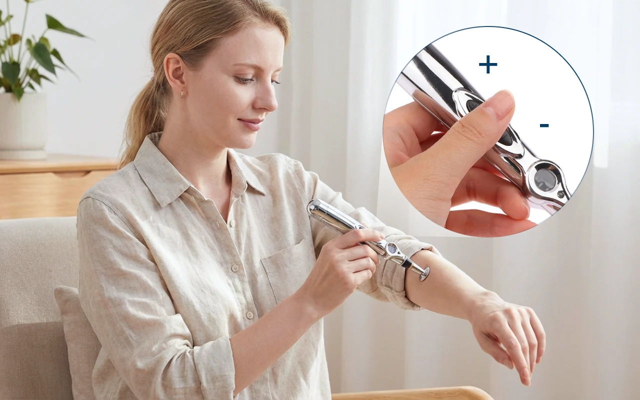 Ortorex akupunkturní pero přirozeně padne do ruky, což umožňuje pevnou kontrolu. Pomáhá snadno dosáhnout na každé místo a zpříjemňuje proces léčby.