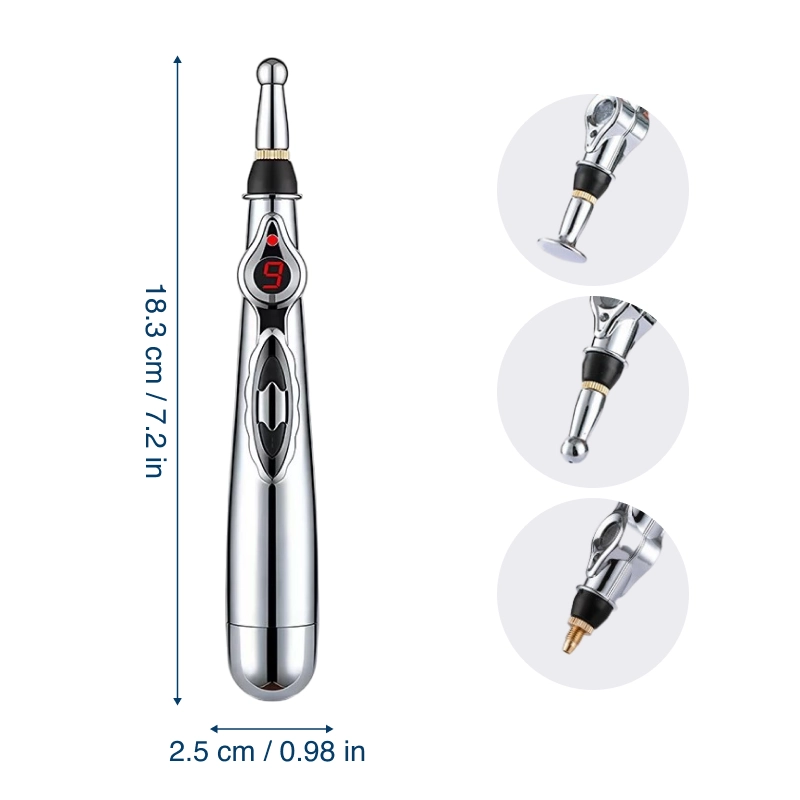 Díky tomu je náš akupunkturní pero univerzální a vysoce účinné. Každá masážní hlava je navržena tak, aby ošetřovala specifickou oblast vašeho těla.