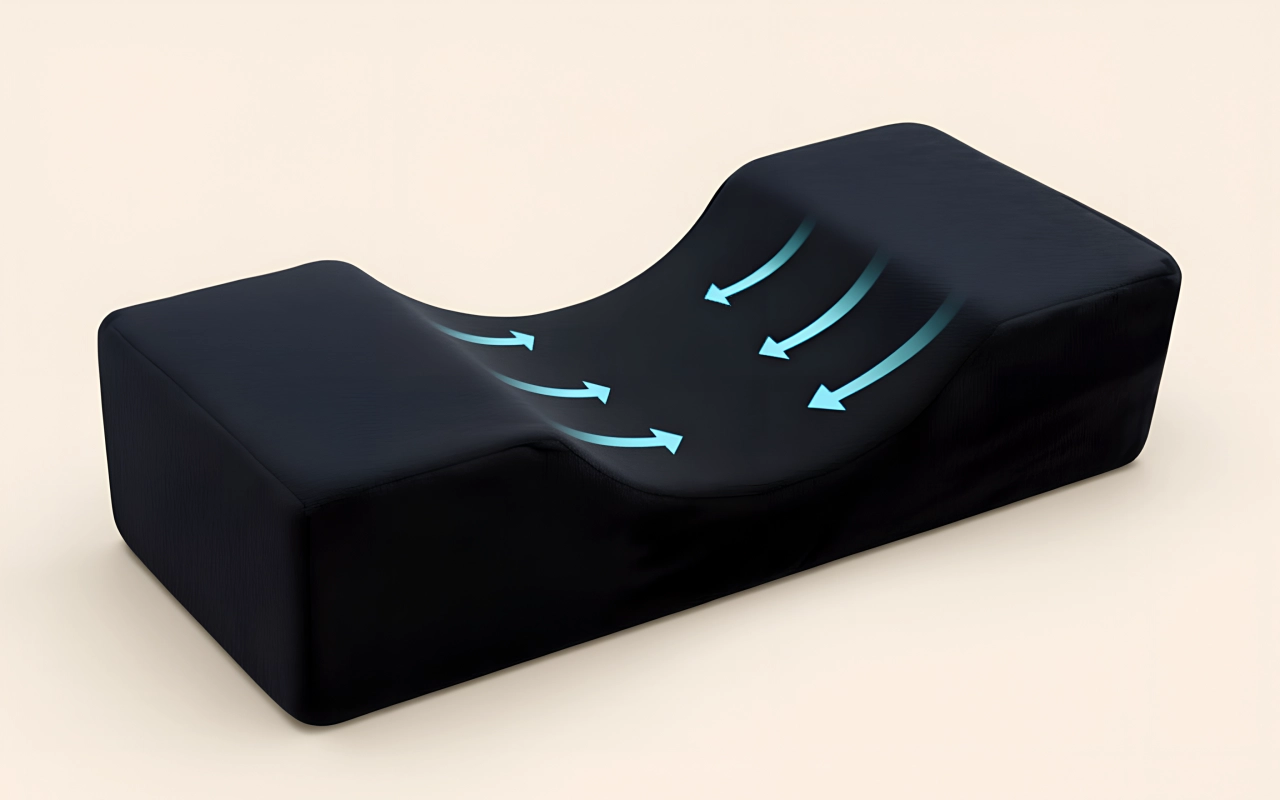 Jedinečný konkávní tvar kopíruje přirozenou křivku vašeho krku. Tento design snižuje bolest a udržuje vaši hlavu ve správné poloze.