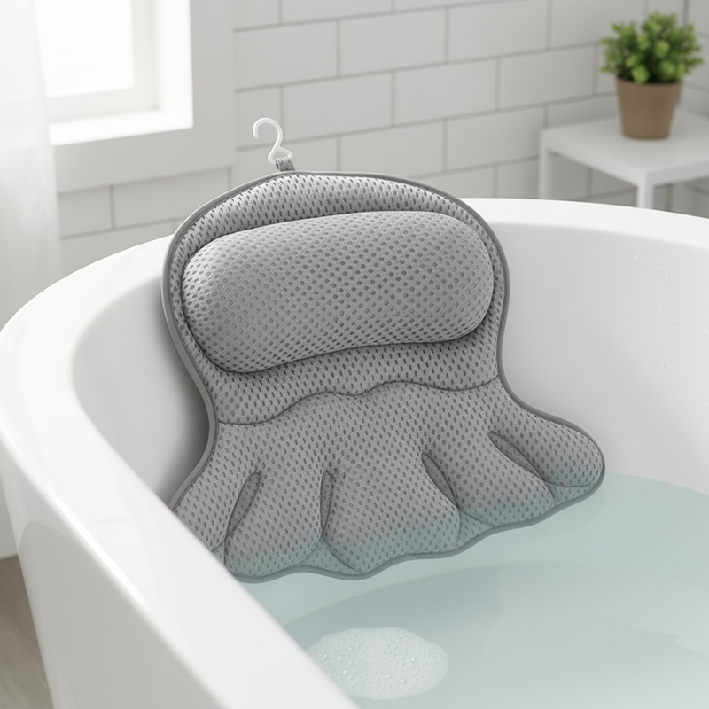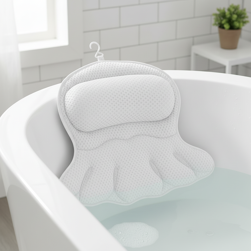 T polštář do vany je super měkký na krk a navíc opravdu zůstává na místě celou dobu. Moje večerní koupele jsou teď mnohem útulnější!