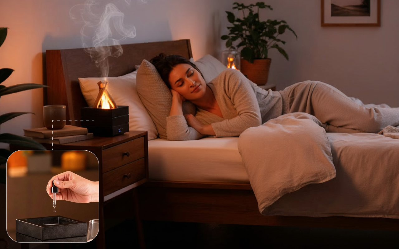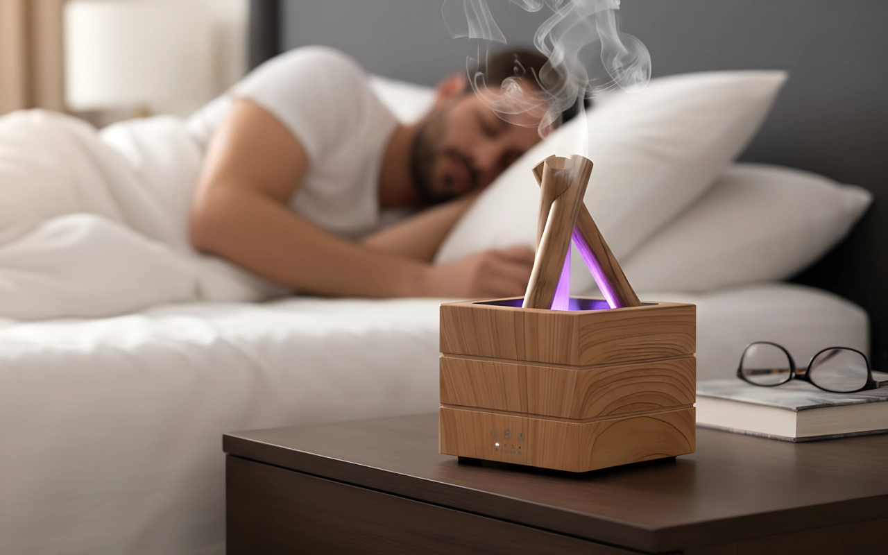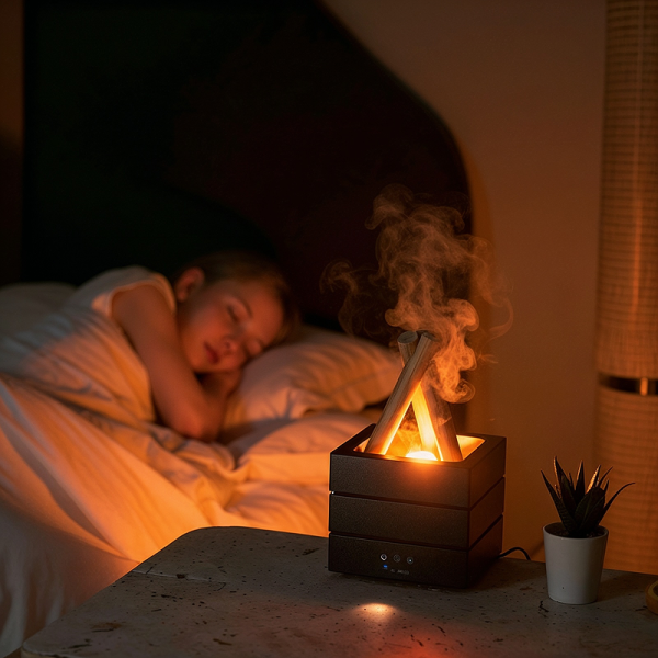 Ohňový difuzér naplní můj pokoj jemnou mlhou a blikající barvy mi každou noc pomáhají lépe usnout. Používám levandulový olej pro extra klid.
