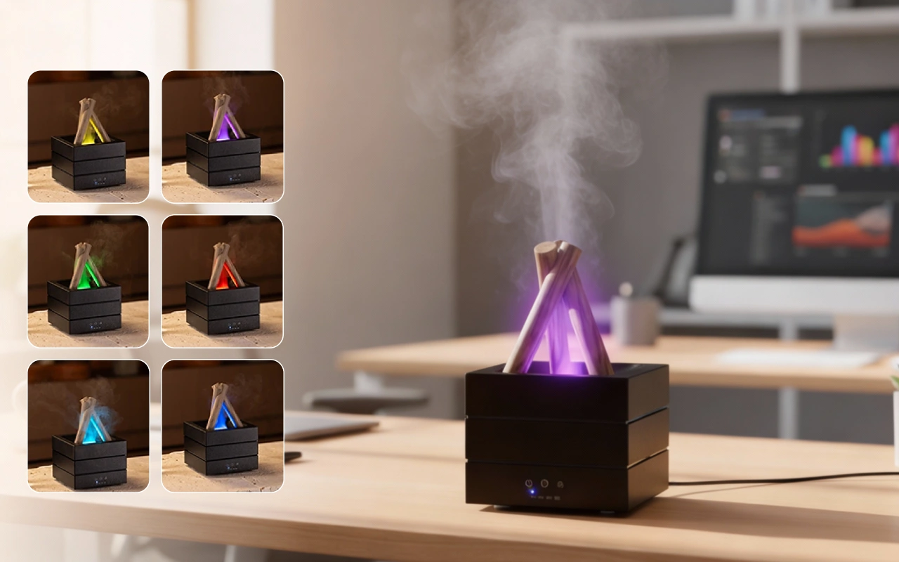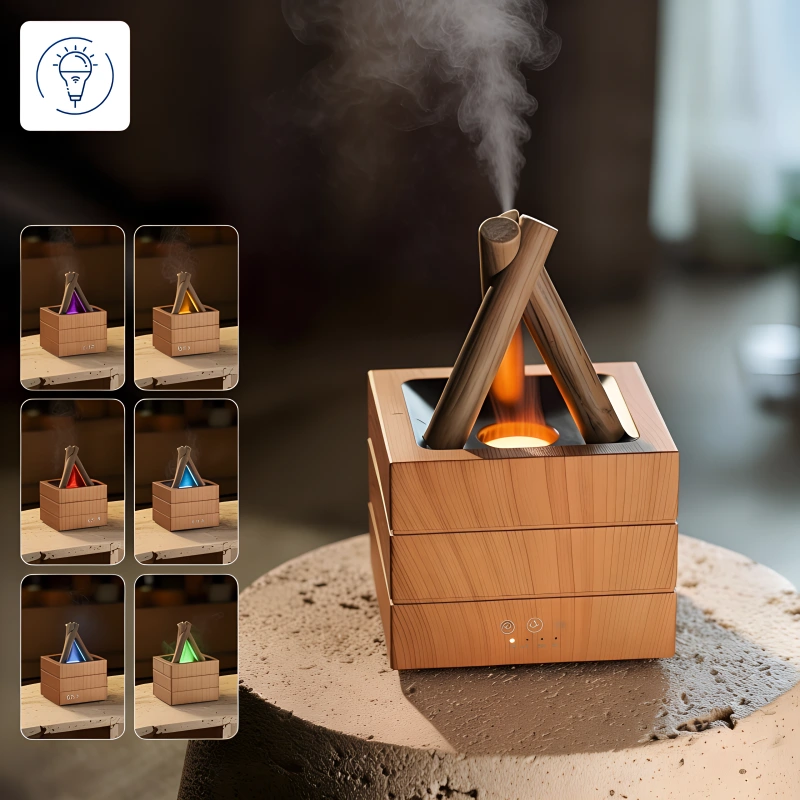 Kamarádka mi doporučila ohňový zvlhčovač. Teď mám jeden doma a jeden v kanceláři! Měkký efekt plamene a vůně dělají mé místo speciálním.