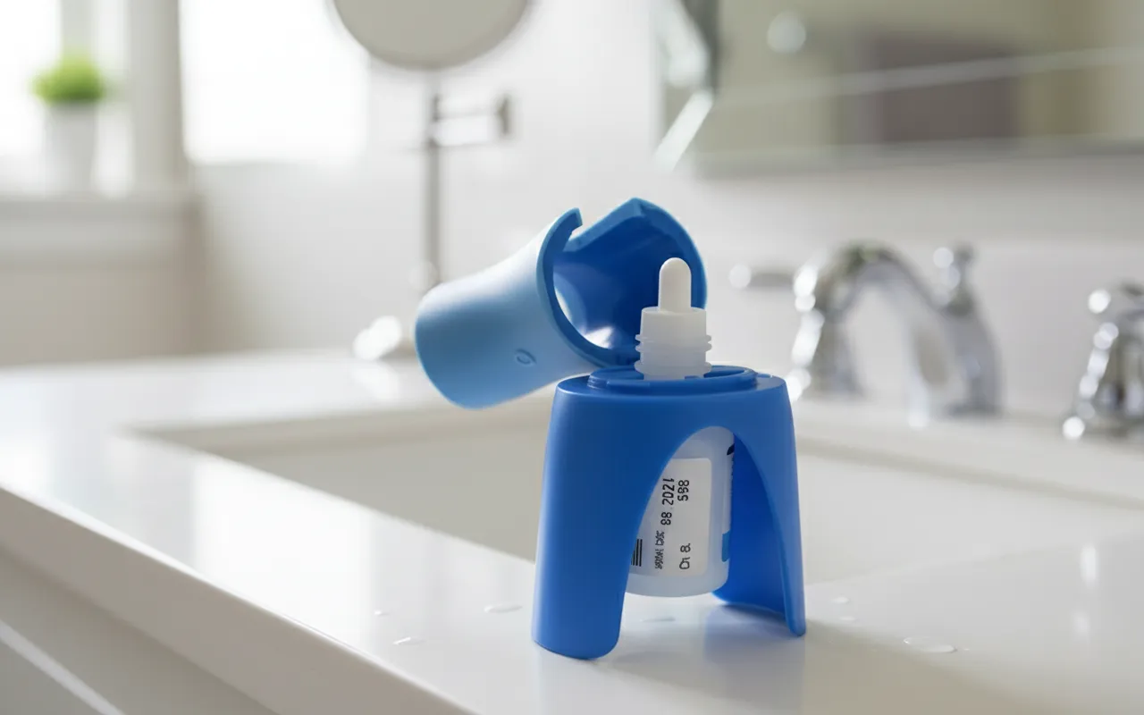 Tento dávkovač funguje s téměř každou značkou a velikostí lahvičky s očními kapkami.
