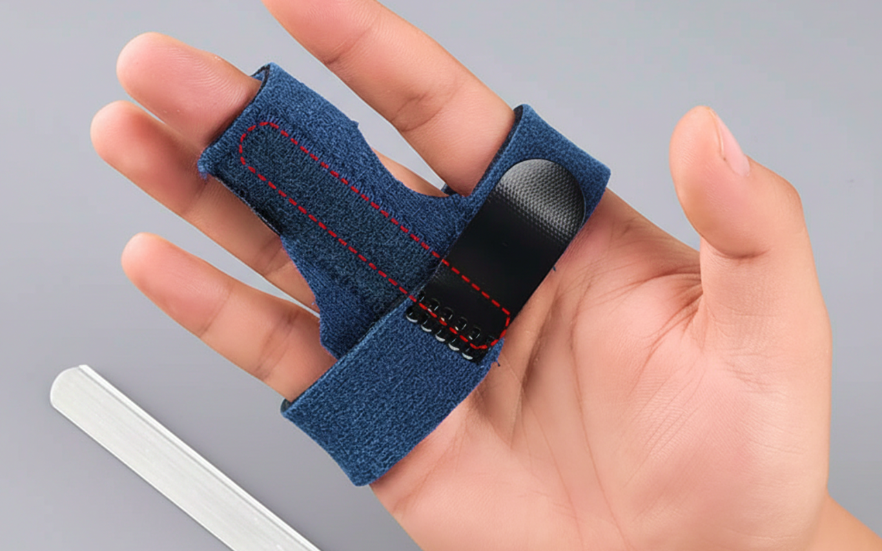 Hliníková výztuha udržuje klouby ve stabilní poloze a podporuje lepší hojení. Zabraňuje nechtěnému ohýbání, zablokování nebo dalšímu poranění během rekonvalescence.