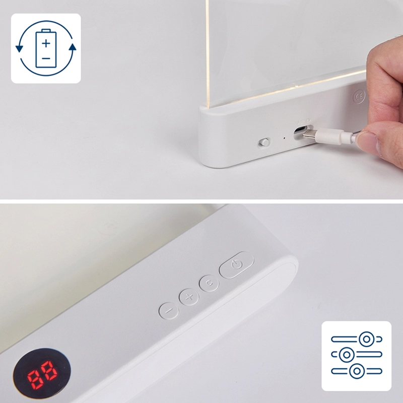 Noční čtení je snadné a šetrné k vašim očím s plochým panelem lampičky Ortorex. Jemně osvětluje každou stránku a zajišťuje jasná slova bez ostrého světla. Flexibilní nastavení umožňuje klidné studium nebo čtení pohádek před spaním. Lehká konstrukce ulehčuje přesun kamkoli potřebujete.