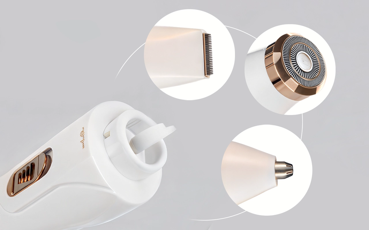 Tři nástavce se postarají o obličej, podpaží, nohy i linii bikin. Jedno kompaktní zařízení se vejde kamkoliv a zajistí snadnou úpravu kdekoliv.