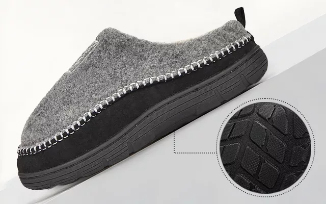 Texturovaná podrážka pomáhá zabránit uklouznutí na hladkých površích. Krokujte sebevědomě po dlaždicích, dřevě nebo jiných površích v interiéru.