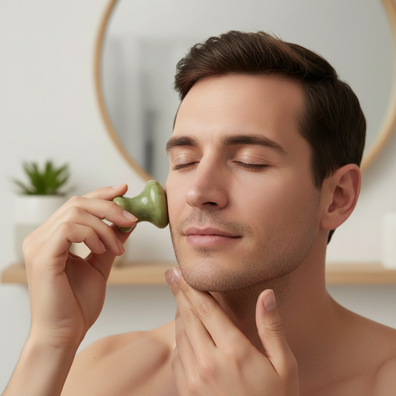 Gua sha opravdu pomáhá s odvodněním obličeje po ránu. Velmi jednoduché a vidím lépe tvary čelisti i tváří. Občas ho používá i můj bratr.