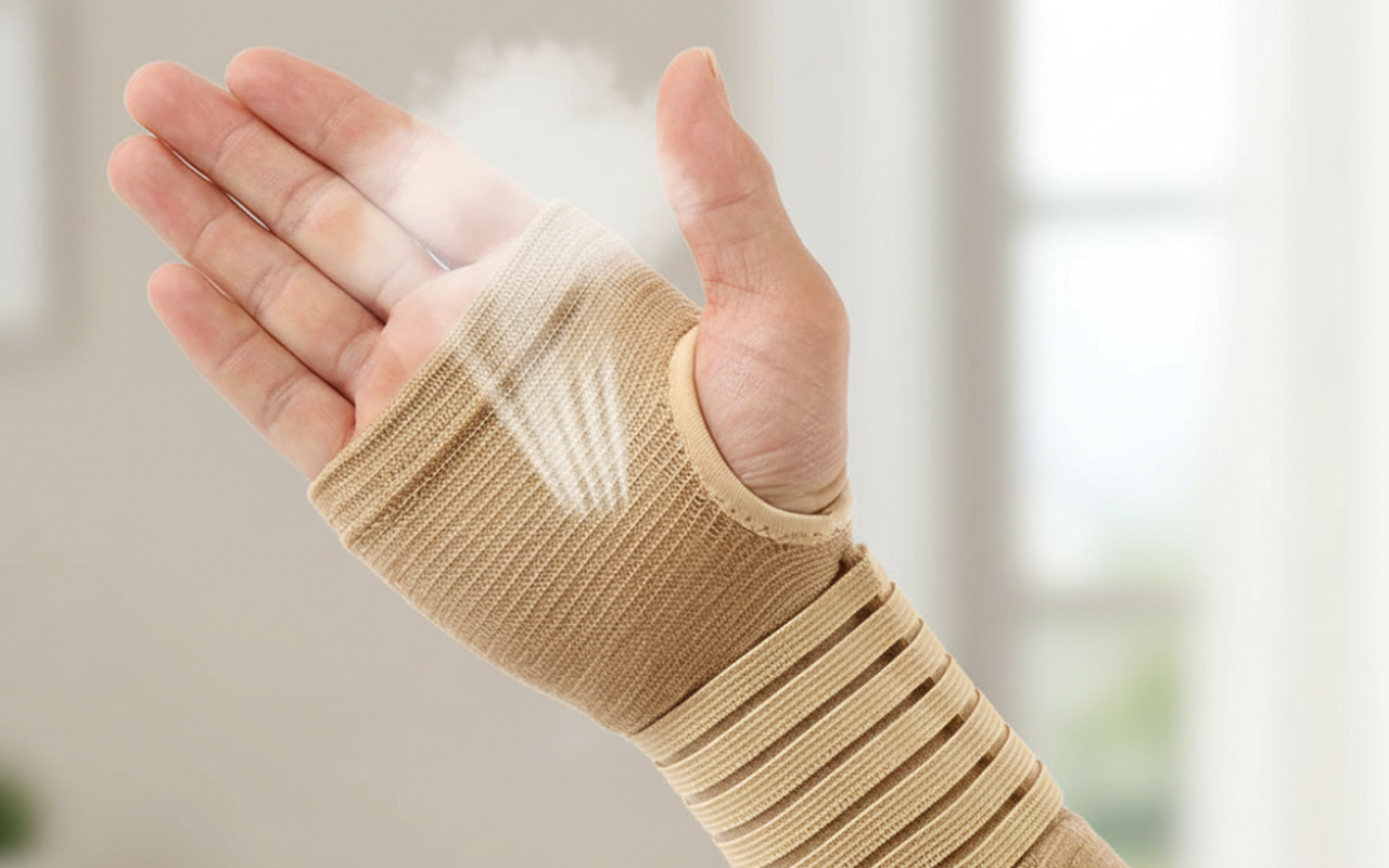 Obvaz na zápěstí je měkký a pružný, a moje ruka se ani po celodenním nošení nepotí. Bolest zápěstí rychle ustupuje.