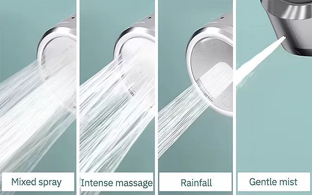 Můžete si vybrat mezi jemnou mlhou, intenzivní masáží, deštěm a smíšeným proudem. Každý režim poskytuje jedinečný zážitek, zajišťuje relaxaci a pohodlí.