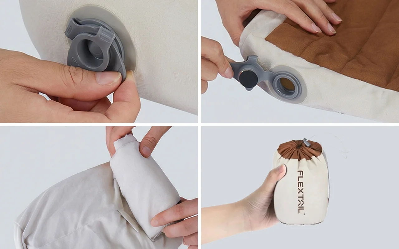 Lehký design se snadno vejde do jakékoli tašky. Rychlé nafouknutí a vyfouknutí šetří drahocenný čas na cestách.
