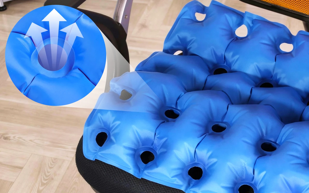 Tlak a bolest zmizí při použití tohoto chytrého doplňku. Je lehký a prodyšný, perfektně sedí na jakékoli židli. Čištění trvá jen pár sekund a na uskladnění potřebuje minimum místa.