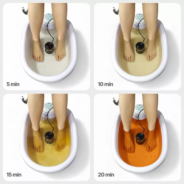 Začala jsem používat detoxikační lázeň na nohy každý večer po práci a moje nohy jsou mnohem méně oteklé. Miluji sledovat, jak se voda mění barvou!