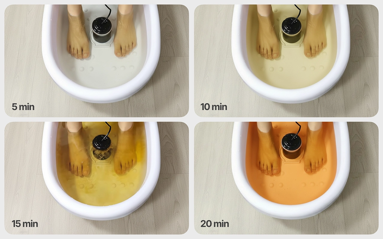 Sledujte, jak nečistoty odchází, když se voda pod vašima nohama zbarví. Uvidíte, jak se těžké kovy a odpad každým použitím viditelně odstraní.