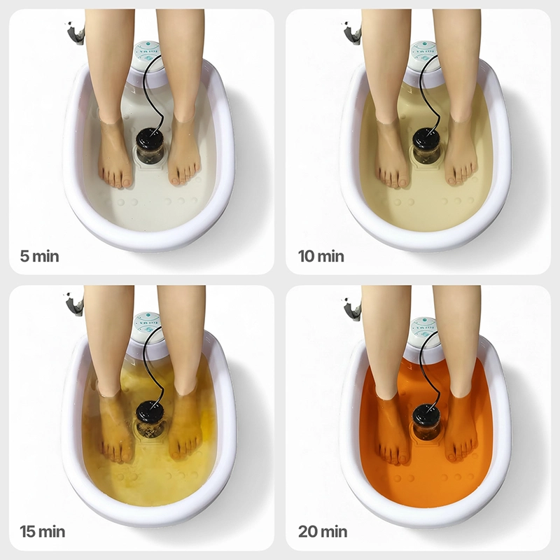 Sledujte, jak nečistoty odchází, když se voda pod vašima nohama zbarví. Uvidíte, jak se těžké kovy a odpad každým použitím viditelně odstraní.