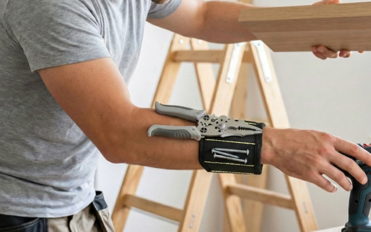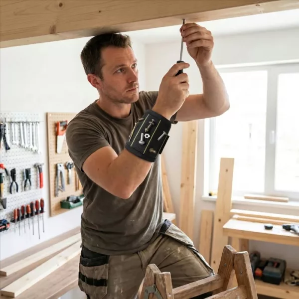 Náramek Ortorex udržuje šrouby a bity bezpečně na dosah. Silné magnety brání drobným dílům v zapadnutí za nábytek. Lehký pásek padne na většinu rukou, aniž by klouzal. Domácí práce zvládnete rychleji, protože vše potřebné zůstane přehledně uspořádané.