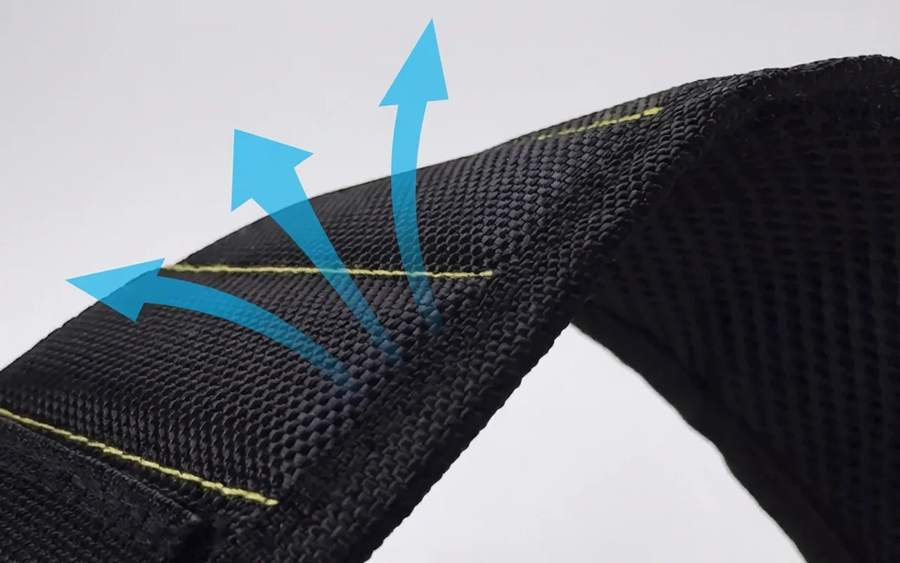 Náramek je vyrobený z prodyšné síťoviny, která zabraňuje pocení a podráždění pokožky. Nastavitelné zapínání sedí na zápěstí všech velikostí.