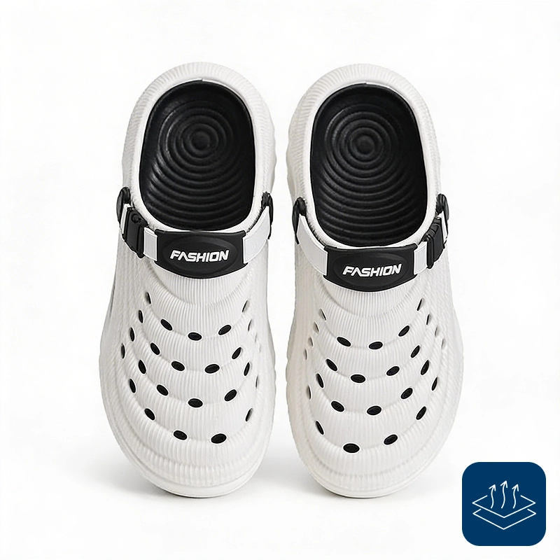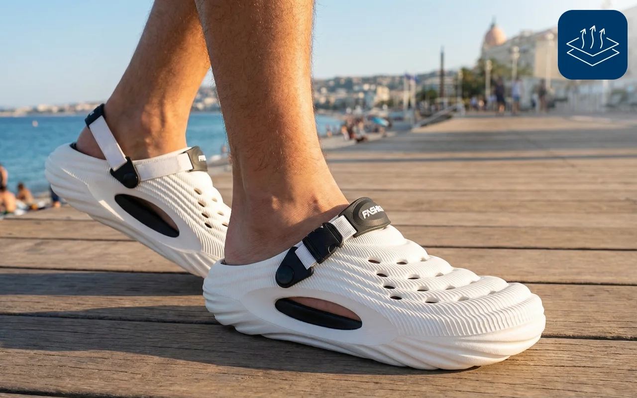 Větrací otvory umožňují rychlý odtok vody po návštěvě pláže. Nohy zůstávají suché a svěží, i když zvlhnou venku.