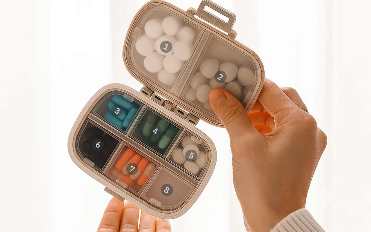 Bral jsem léky v průběhu dne a nosil s sebou všude lahvičky. Teď mám všechno přehledně v této malé krabičce a nikdy nezapomenu dávku.
